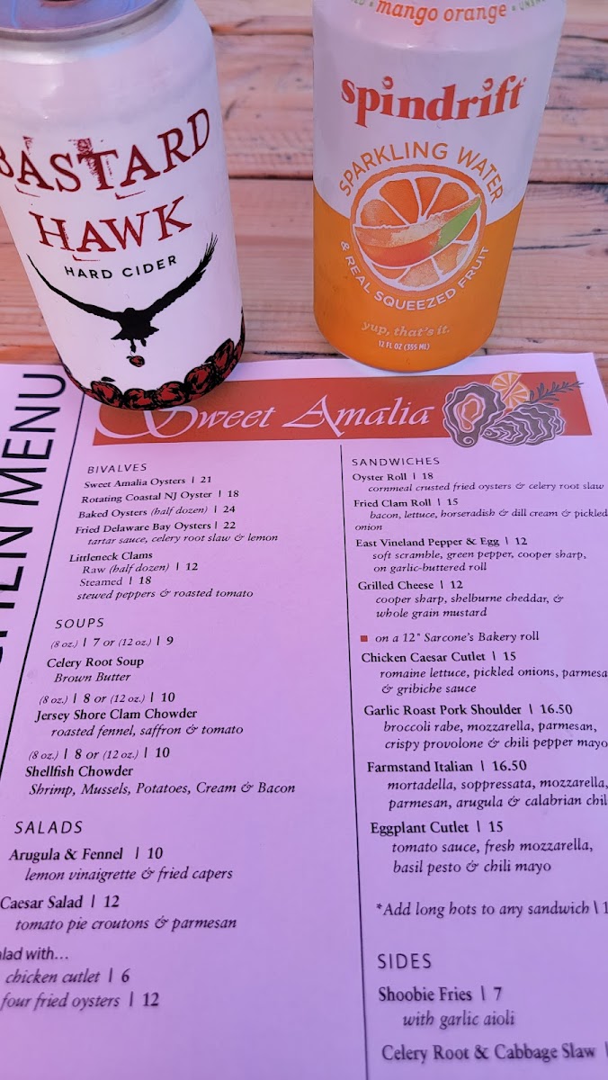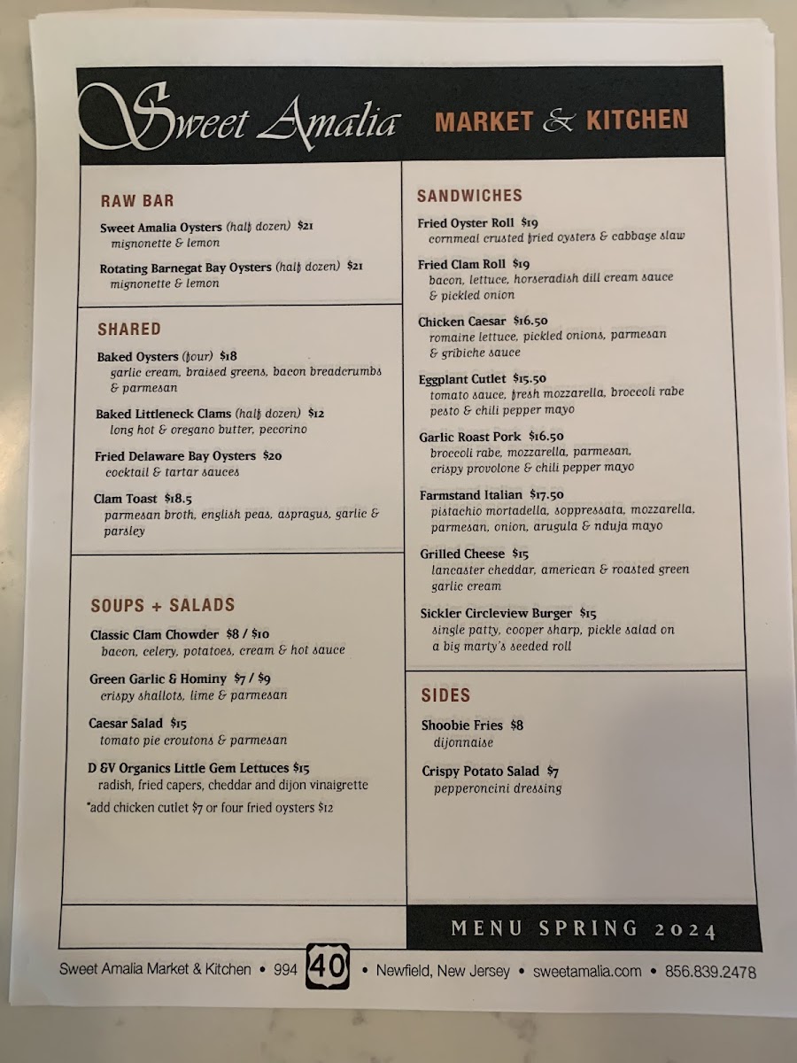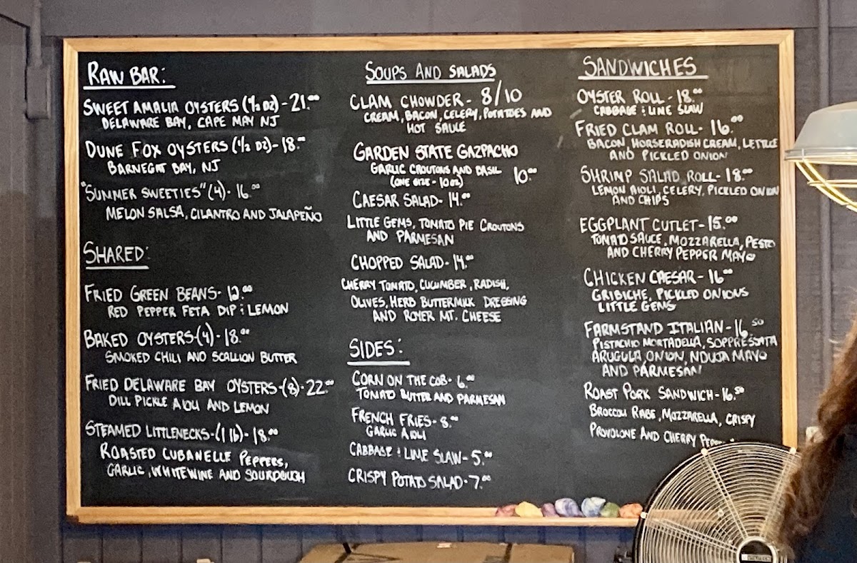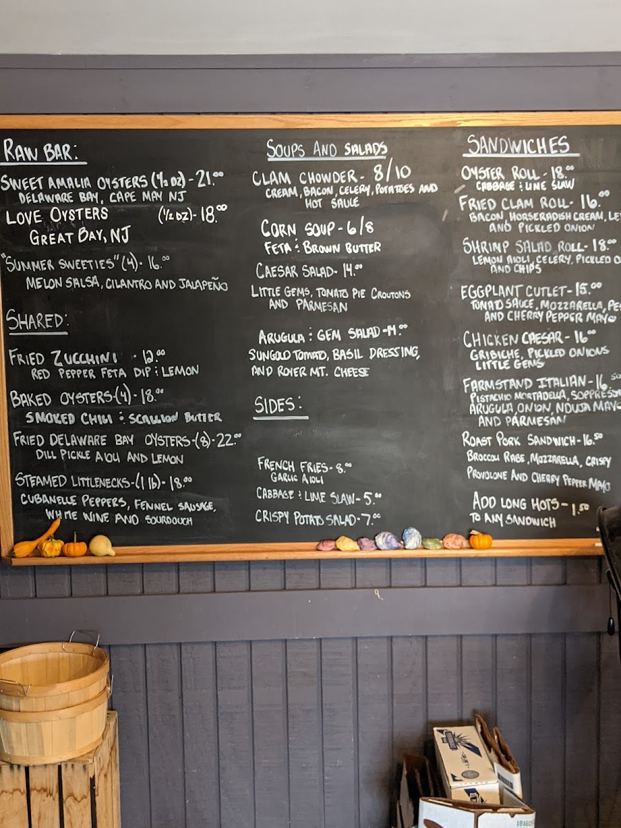 Dishes like the Sweet Amalia oysters and Jersey Shore clam chowder exemplify the local seafood focus, while options such as the fried clam roll and heirloom tomato BLT bring a familiar, comforting touch. Lighter salads and seasonal sides like crispy potato salad and tempura asparagus offer refreshing complements, perfect for day-to-day bites or a relaxed lunch.