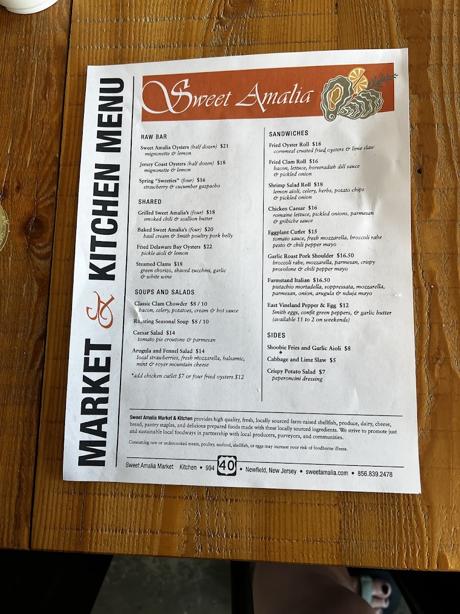 Sweet Amalia Market and Kitchen Menu